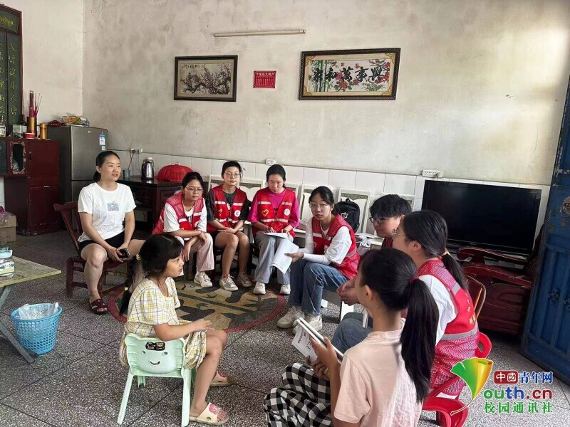 (图为支教队成员对暑期托管班学生家庭进行走访。中国青年网通讯员喻文洁供图)
