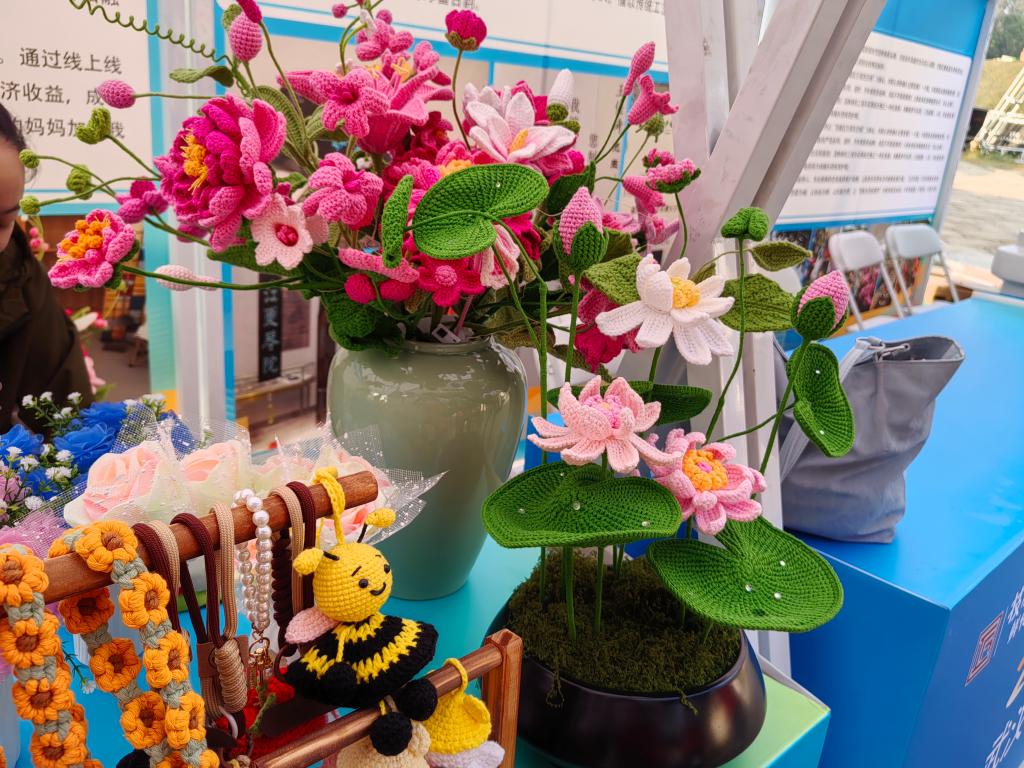 活动现场,筑梦志愿服务队与社区居民共同打造的手工钩织非遗文化打卡点引人注目,织品精巧细腻,与江夏里码头的古韵风貌相映成趣。服务队同步开设“云端织艺课堂”,通过线上直播直观呈现钩织技法,将非遗魅力融入码头实景,以文化赋能旅游,助力在地文旅品质提升。此外,服务队还协助社区图书馆整合非遗文献、布置专题文化展区,推动构建社区层面的非遗保护与传播平台,进一步夯实非遗传承的群众基础与知识根基。