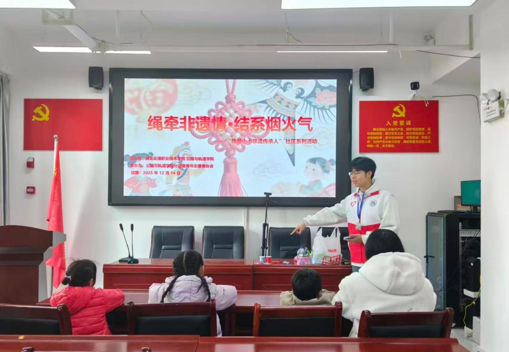 2025年12月14日,公路与轨道学院“筑梦”志愿服务队走进武汉市五里新城社区,举办“指尖结韵·非遗传承”中国结文化体验活动,为社区亲子家庭开启了一场融合传统工艺与现代美育的文化探索之旅。