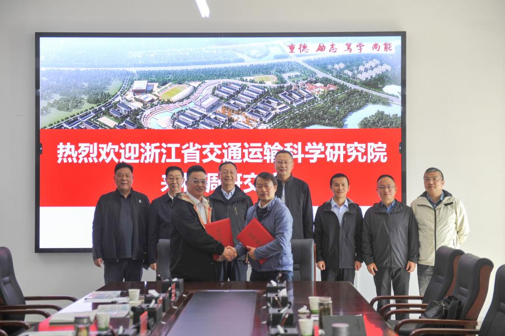 10月22日上午,浙江省交通运输科学研究院党委委员、浙江公路水运工程咨询集团有限公司总经理张征文一行来我校调研交流,与我校签订智慧公路数智产教融合实训中心共建意向书。党委书记邵爱军、副校长齐建模见证了签约仪式。