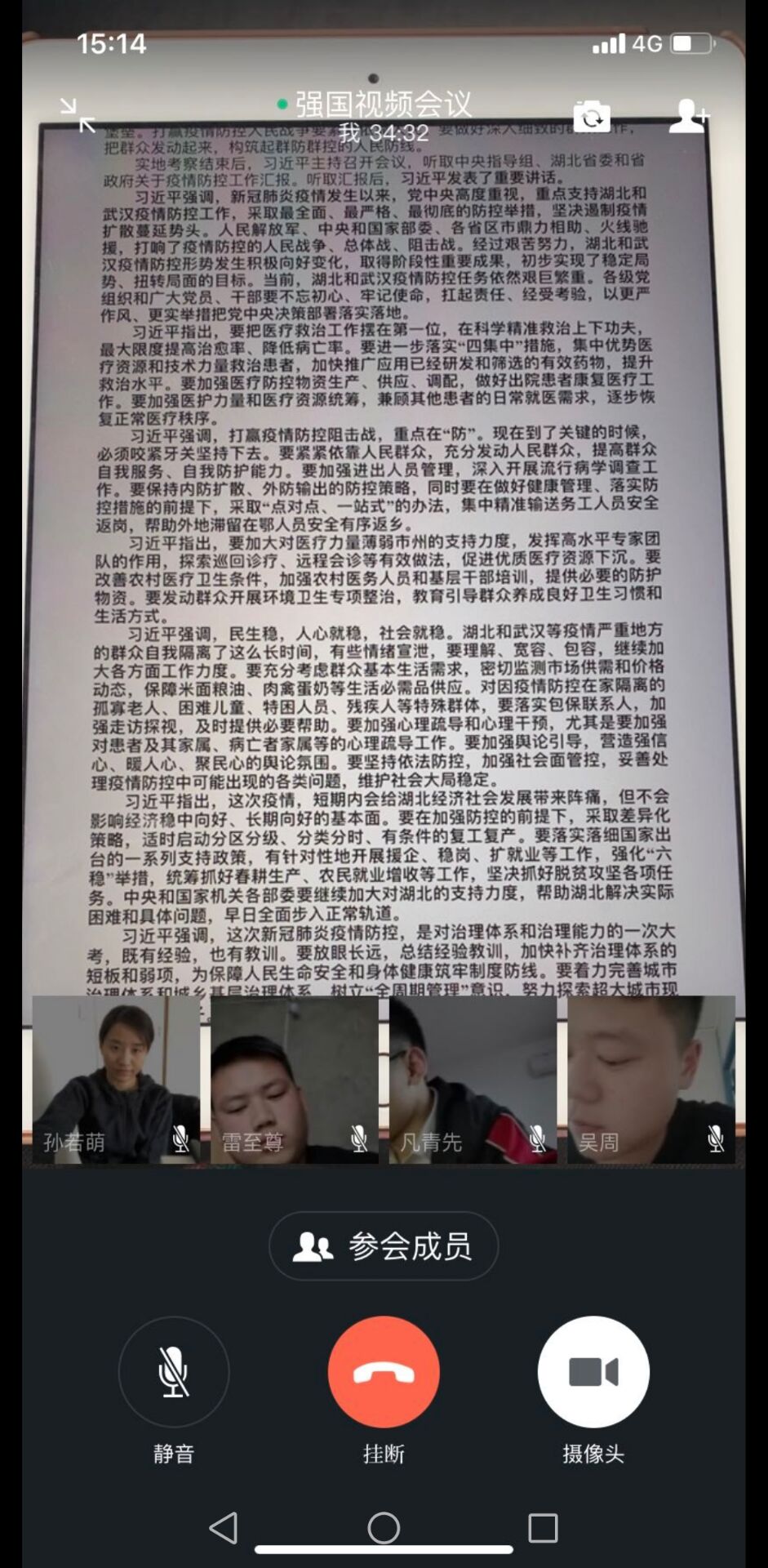 柳其红同志结合自身在防疫指挥部负责安全保卫和稳定工作的经历,谈到:作为防疫指挥部的一员,自己和家人在各自的岗位上履职尽责,积极支持武汉抗疫工作。李本涛和孙静同志从防疫期间如何破解学生就业难题的角度探讨了进一步加强对学生就业指导和帮扶对策。李雪婧同志从宣传角度谈到本次“战”疫中,对于学生参与抗疫志愿工作的引导和宣传。