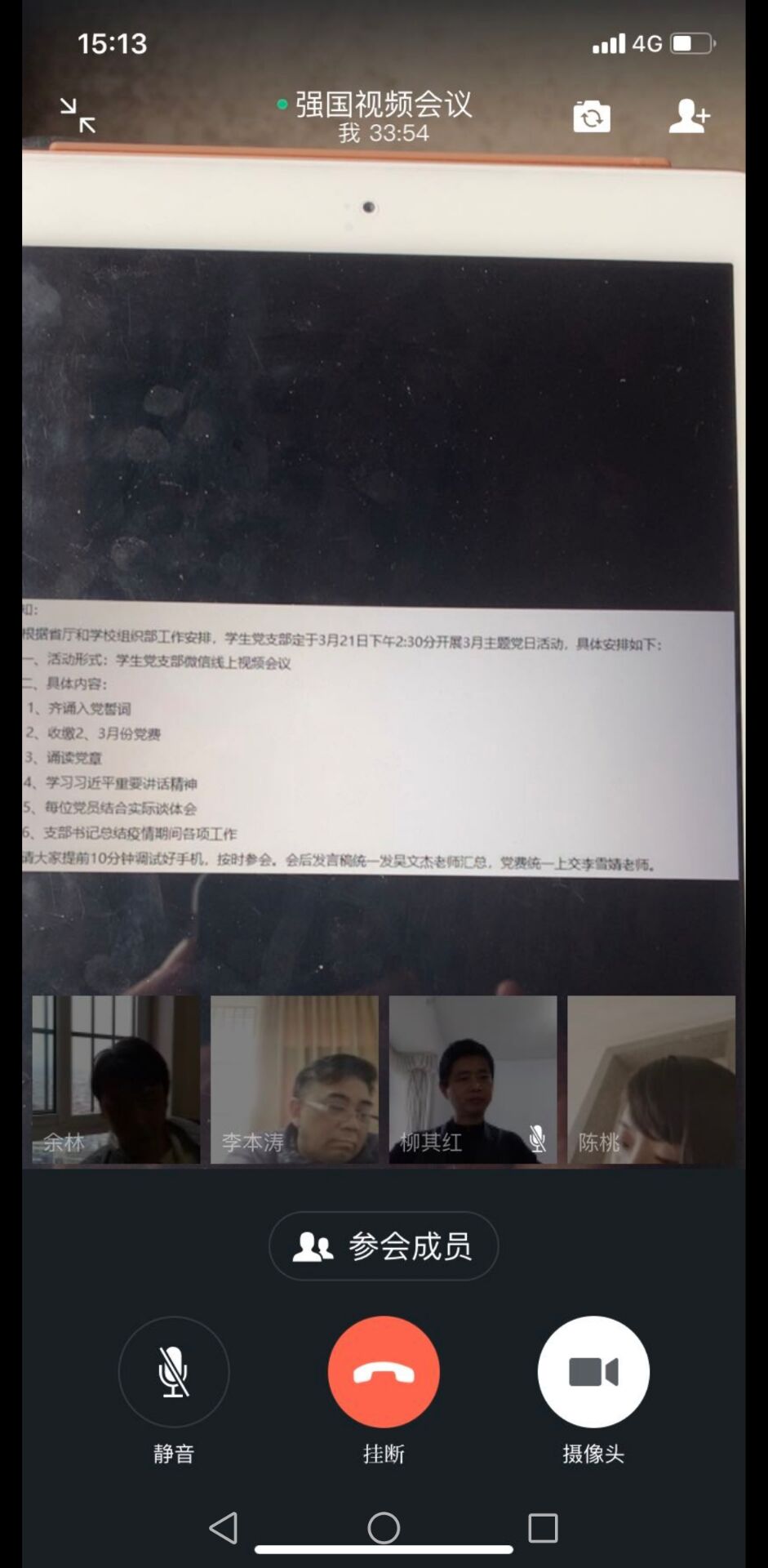 主题党日活动按照“4+N”模式进行,全体党员温入党誓词;缴纳3月党费;诵读党章;支部宣传委员吴文杰同志组织大家学习“习近平2020年3月10日在湖北考察新冠肺炎疫情防控工作讲话”。习总书记在讲话中鼓舞各级党组织和广大党员、干部要不忘初心,牢记使命,扛起责任、经受考验,要坚决反对形式主义、官僚主义,并激励广大党员干部在危险时刻挺身而出,英勇奋战。