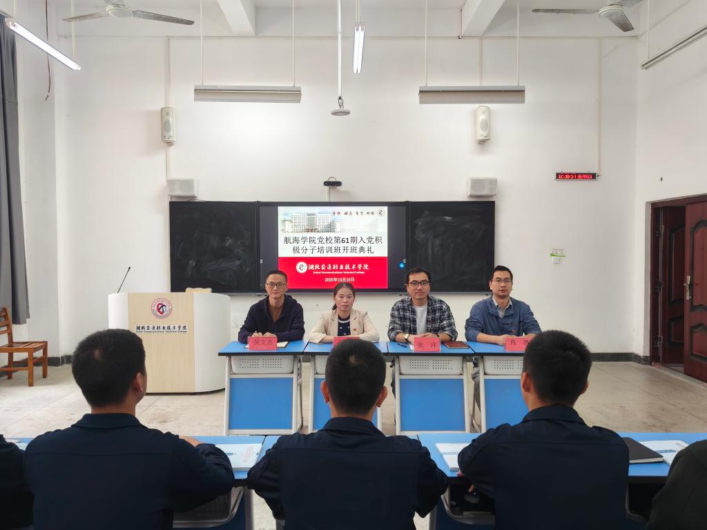 2025年10月16日,航海学院第61期入党积极分子党校培训班开班仪式在笃学楼107教室隆重举行。学院党总支书记张洋,学生支部书记刘格,学生党支部支委吴文杰、肖洒及全体参训学员参加仪式。仪式由刘格主持。