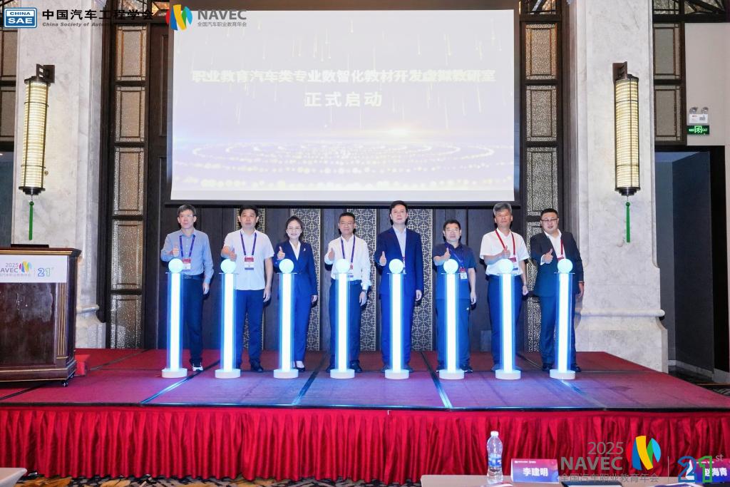 论坛同期举行“职业教育汽车类专业数智化教材开发虚拟教研室”启动仪式和首批长聘教研员、“人工智能+汽车”教研组特聘教研员代表聘书颁发仪式。