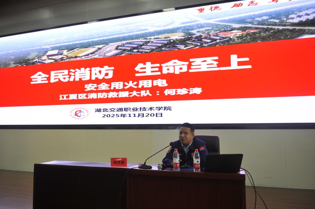 11月20日下午,我校在学术报告厅开展了以“全民消防,生命至上”为主题的消防安全知识专题讲座,各学院辅导员代表、各学院实训室负责人、全体宿舍管理人员、食堂工作人员、物业工作人员、安保队员、各学院学生代表等300余人参加。