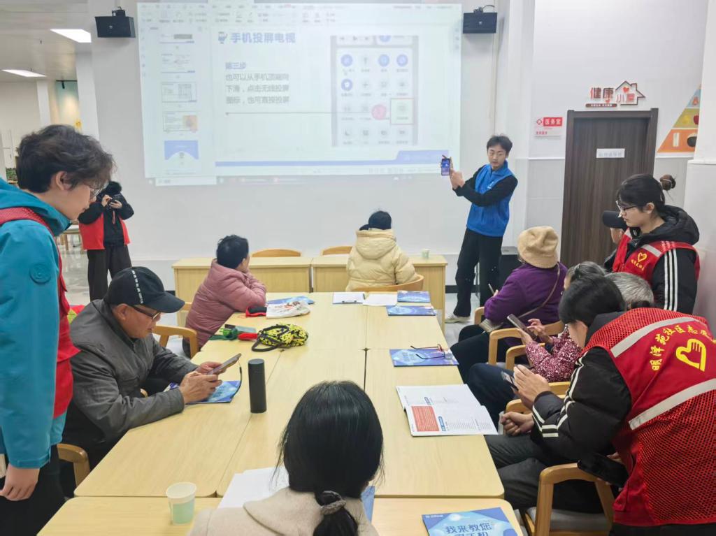 本次志愿教学聚焦老年人日常高频使用的智能应用,精心规划三次实操课程。第一节手机淘宝教学中,志愿者手把手指导老年朋友们掌握商品搜索、买家评价查阅、下单支付等基础操作,详细讲解退换货流程及售后维权要点,帮助大家放心网购心仪商品。第二节美团外卖教学环节,志愿者围绕生活需求,演示如何挑选优质商家、领取平台优惠券、查看订单配送进度,让老年人学会足不出户购买蔬菜水果、日常药品等物资,为生活增添便利。第三节央视频应用教学中,志愿者指导老年人完成APP下载安装,介绍中央电视台及各地卫视直播节目的收看方法,并重点演示手机投屏功能,让老年朋友们能在电视大屏幕上清晰观看节目,与家人共享欢乐时光。