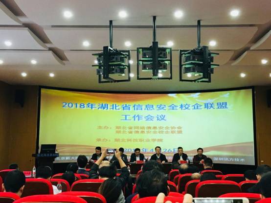 2018年4月25日湖北省信息安全校企联盟工作会议在湖北科技职业学院召开,我院骨干教师王培刚老师,杨辉老师,朱薏老师作为代表出席本次会议。此次会议由湖北省信息网络安全协会职教工作委员会和湖北省信息安全校企联盟共同主办,北京新大陆时代教育科技有限公司,南京五十五所技术开发有限公司等五家业内著名公司协办,为贯彻落实《国务院关于加快发展现代职业教育的决定》精神,深化职业教育教学改革,进一步提升湖北省职业院校电子信息类专业建设,促进相关专业发展,全面提高人才培养质量,邀请了二十多所省内职业院校共同参与。本次会议对物联网、网络安全、云安全等方面的技术发展以及产教联合做出了共同探讨,对我院未来的学科发展有很好的启发与促进作用。