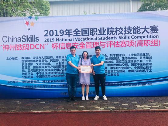 2019年6月12日,全国职业院校技能大赛“信息安全管理与评估赛项”在湖北生物科技职业学院拉开帷幕,全国各省市共计106只队伍齐聚湖北武汉,展开激烈角逐。在领队刘解放老师的带领下,由计算机网络教研室主任于晓阳老师与朱薏老师指导的参赛队(参赛学生:王铭锴、石奇东、郭松)参加了本次比赛,经过一整天的全力拼搏,荣获该组赛项全国三等奖的可喜成绩。
