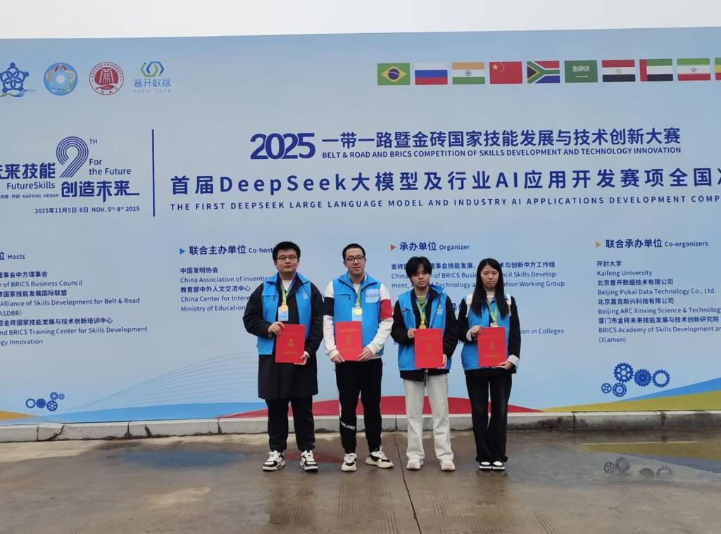 11月6日至8日,一带一路暨金砖国家技能发展与技术创新大赛之首届DeepSeek大模型及行业AI应用开发赛项全国总决赛在河南开封大学圆满落幕。我校交通信息学院两支参赛队伍表现卓越,双双斩获高职组一等奖,其中孟子杰、李梦丽莎团队以全国第二名的优异成绩,成为本次大赛高职组中唯二获得国际赛“入场券”的队伍之一。同时,学校凭借周密的组织保障与突出的参赛成效,荣获最佳组织奖。