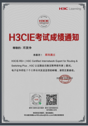 近日,我校云计算技术应用专业2303162班邓萸争、张义进两名同学经过半年的刻苦钻研与精心准备,于2025年10月29日成功获得新华三认证路由交换互联网络专家(H3CIE-RS+)证书。这一认证是网络技术领域的权威认证,尤其对于在校学生更是得来不易,标志着两位同学在路由交换技术领域做了充分的学习积累,成为了行业所需的高水平技术技能人才。