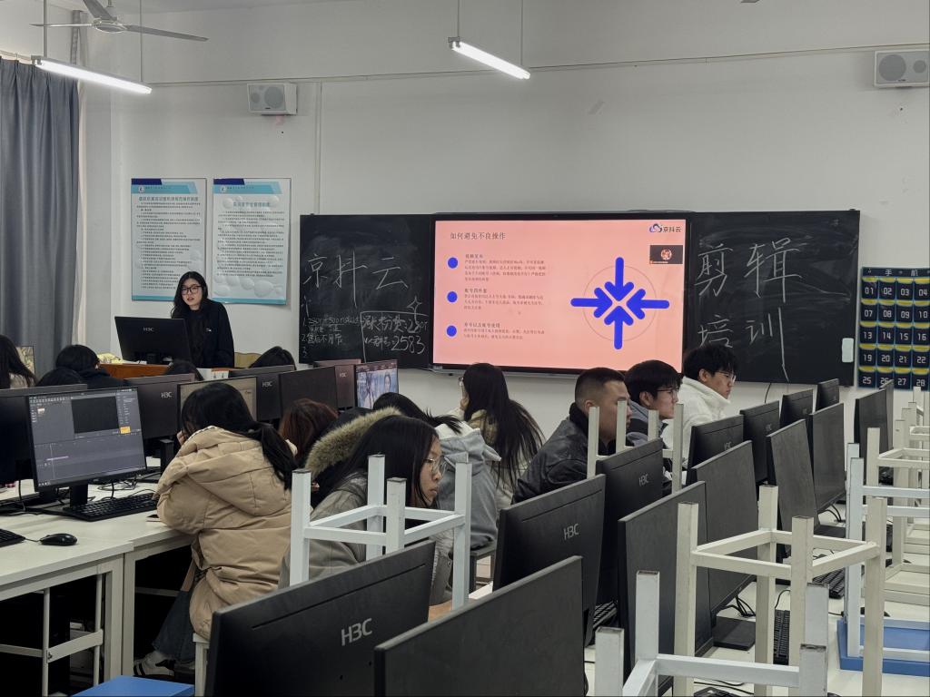 宣讲结束后,企业技术团队随即开展了剪映软件实操培训。培训以实际案例为引导,演示软件核心功能与实用技巧,并对学生操作中遇到的问题进行细致解答。