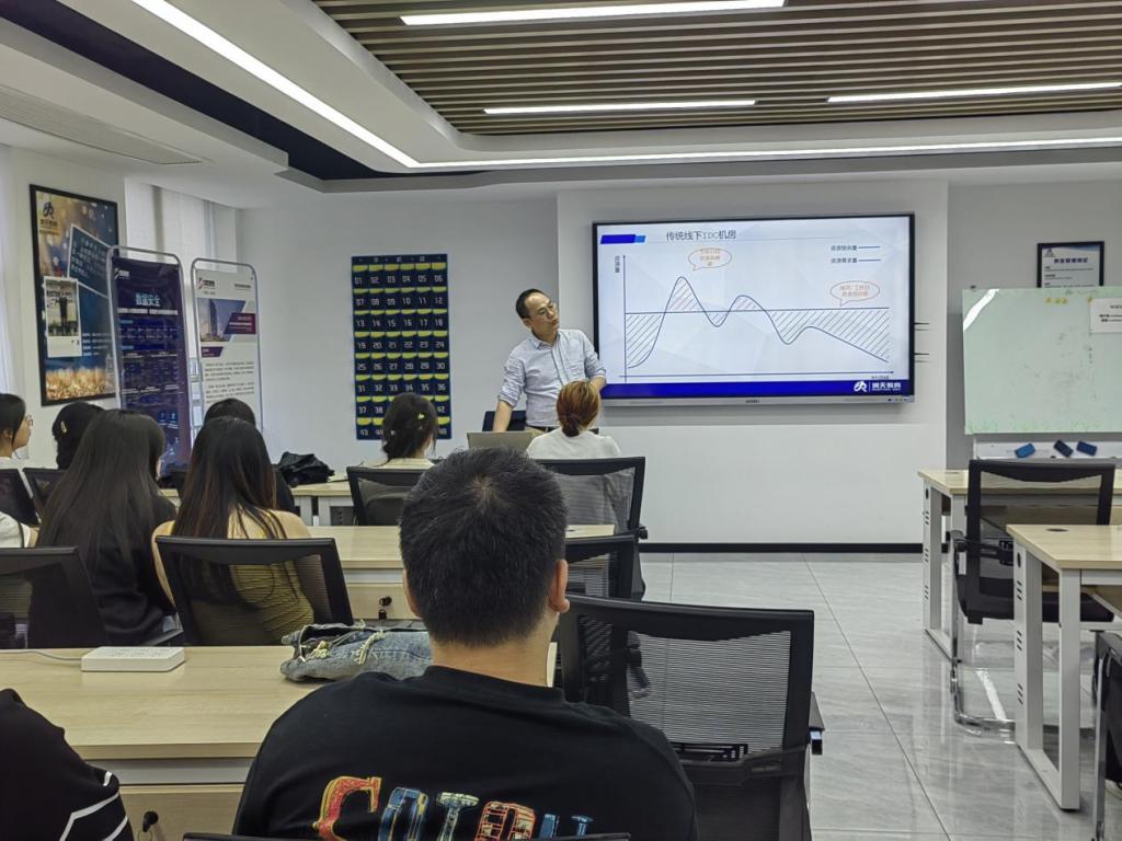 本次社会实践活动分为三个环节,首先参观北京金信润天信息技术股份有限公司武汉分公司的智慧展厅、中心机房、实训基地,了解公司发展历程,核心业务,以及与全国各大高校开展的各项校企合作大事件。第二个环节由企业资深工程师给学生们介绍云计算领域的前沿知识,市场行情,用人需求,岗位所需知识技能,帮助学生探索职业发展方向。最后通过交流探讨,鼓励学生们充分利用在校时间,明确职业目标,制定合理规划,踏实学习,逐步积累知识与技能。