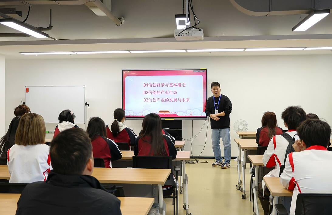 冯涛总监在座谈会上表示热烈欢迎,并生动地讲解了公司关于信创的背景及基本概念,在此基础上详细分享了我国目前信创产业的生态,最后总结信创产业的发展与未来。座谈会上重点阐述了信创行业发展面临的两大难题:如何进行信创生态的建设、开发与匹配,以及如何尽快完成产业人才的储备、能力提升与人才转型。与会教师及学生与冯涛总监积极互动,相互交流,收获颇丰。