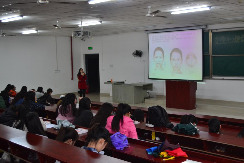 首先,何念老师以“什么是女人”为话题的引入主题。然后通过探讨“女人和男人的区别?如何形容女人?什么是美丽?漂亮就是美丽吗?”等一系列问题对“美丽女生”做了诠释。最后,何老师从心理学的角度讲述了女生要从穿衣得体、面容修饰、身材保持方面提高自身的外在美;从多读书读好书、培养兴趣、学会独立三个方面修炼内在美,提示女大学生要内外兼修,悦纳自我,拥有自己的事业,做最美的女生。在整场讲座中,同学们都非常专注、积极、认真,表现出极大的兴趣。