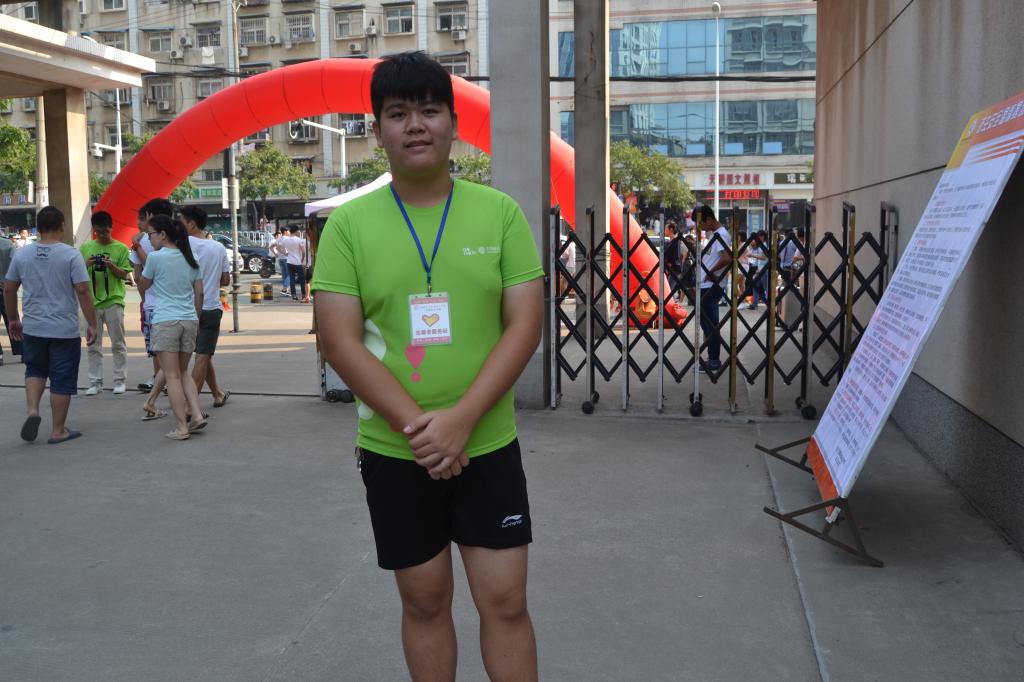 金宇辉说:“本来在领衣服的时候就想换个大点的,却发现没有更大尺码了,想想有机会参与迎新志愿者活动为新生做服务时,就觉得衣服小一点,显得胖一点也没什么关系。”