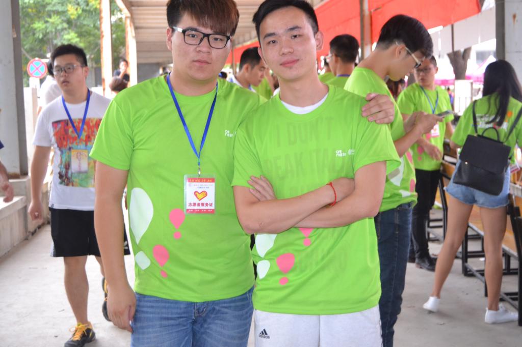 在交院的迎新志愿者队伍中有两个人特别的引人注目,他们身材高大,因所穿志愿者服装较小,所以格外显胖。然而在同学们看来,此刻,他们就是交院最帅的“胖子”。