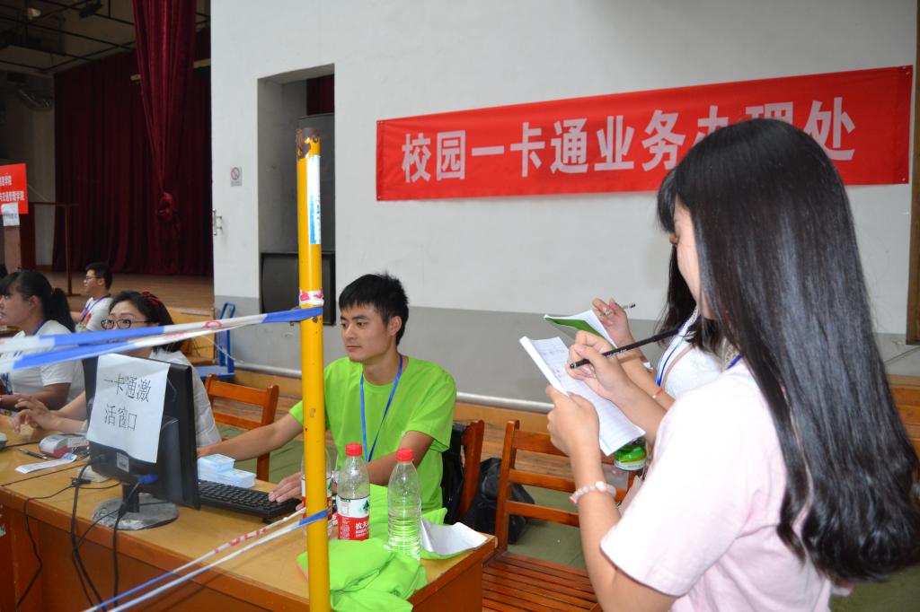 另外,交通信息学院还有夏贤、吴佳伟等6名同学参与一卡通发放工作。对于这项工作,一名参与的志愿者说:“很高兴能在这里进行志愿者服务,既能够为学弟学妹们服务,又锻炼了专业技能”。
