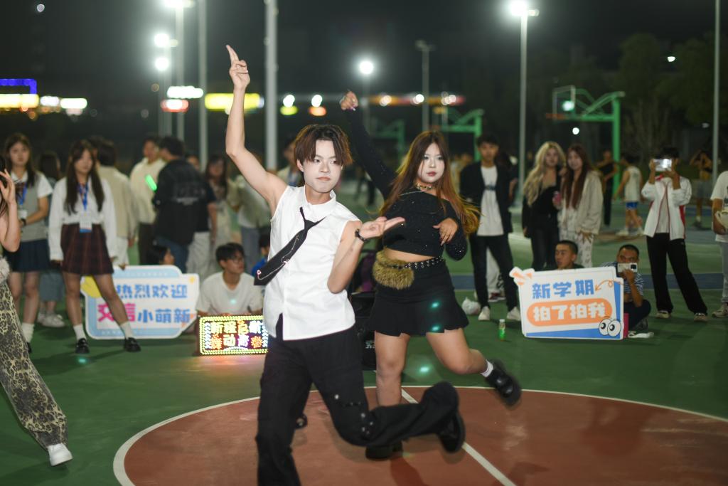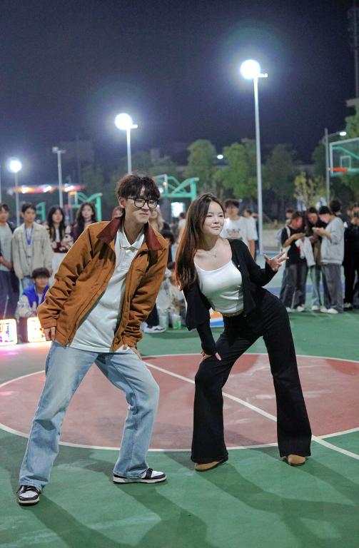 快闪的余温尚未消散,自由开放的“随舞”环节接踵而至。随着一首首流行金曲接连奏响,现场氛围被彻底点燃。同学们纷纷抛开羞涩,响应音乐的召唤,勇敢地步入场地中央。无论是酷炫的街舞、动感的韩舞,还是随性洒脱的自由发挥,每位参与者都成为了舞台的主角,他们以身体的律动表达自我,以舞步传递情感。这种“人人皆可舞”的模式极大地激发了同学们的参与热情。