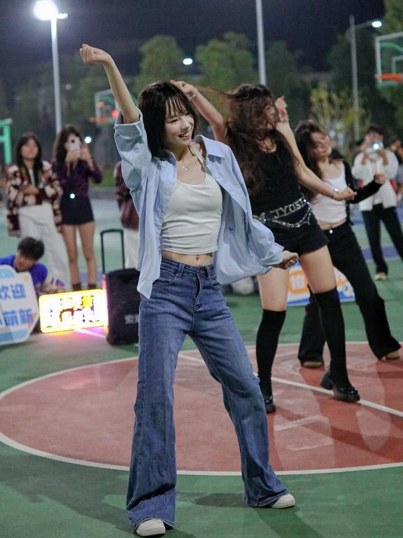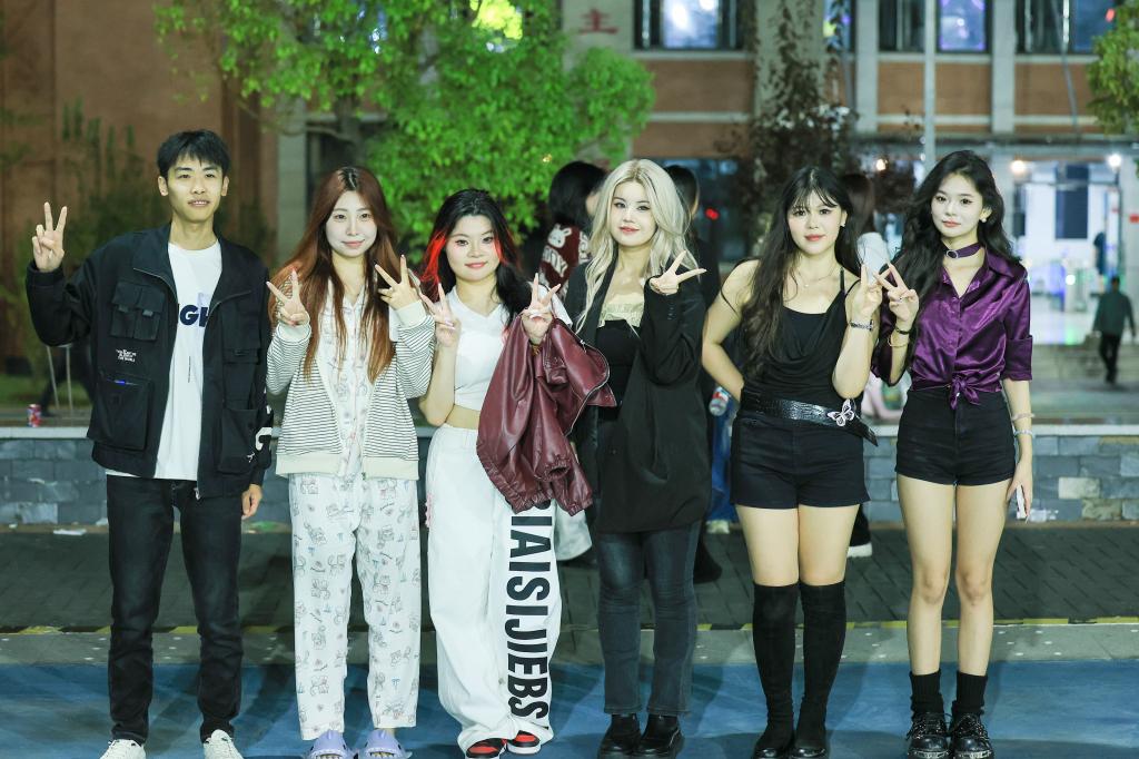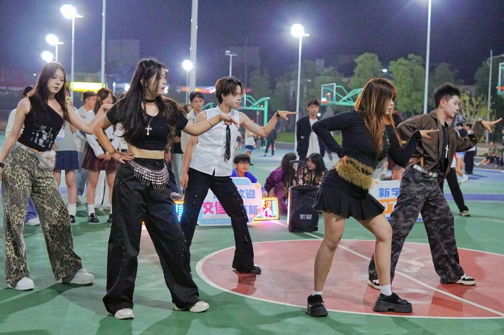当晚八点三十分,正值晚自习下课人流高峰,数十名学生舞者从人群中迅速集结,以一场编排新颖、活力四溢的快闪舞蹈“突袭”现场。舞者们动作整齐划一,笑容自信满满,每一个节拍都精准地扣动着观众的心弦。