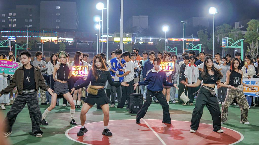 10月14日晚,交通信息学院“‘舞’力全开,随‘乐’而嗨”快闪随舞活动在我校篮球场活力上演,吸引了众多学生驻足围观,现场气氛热烈非凡。