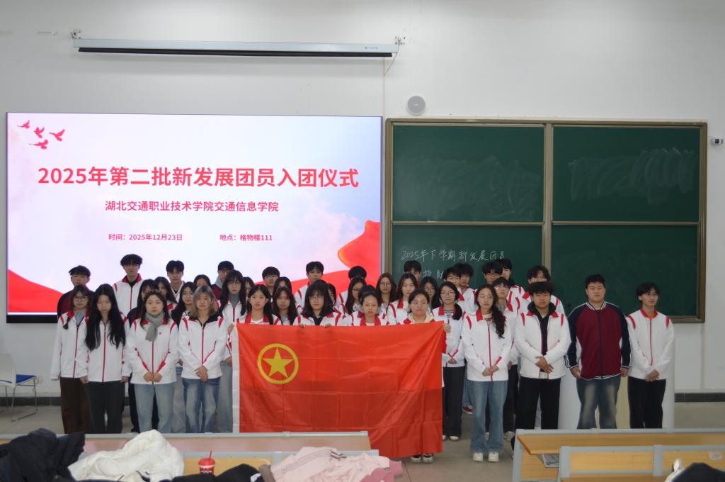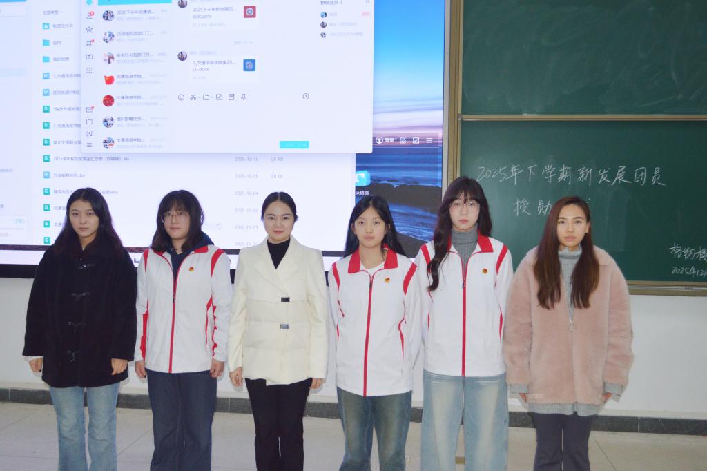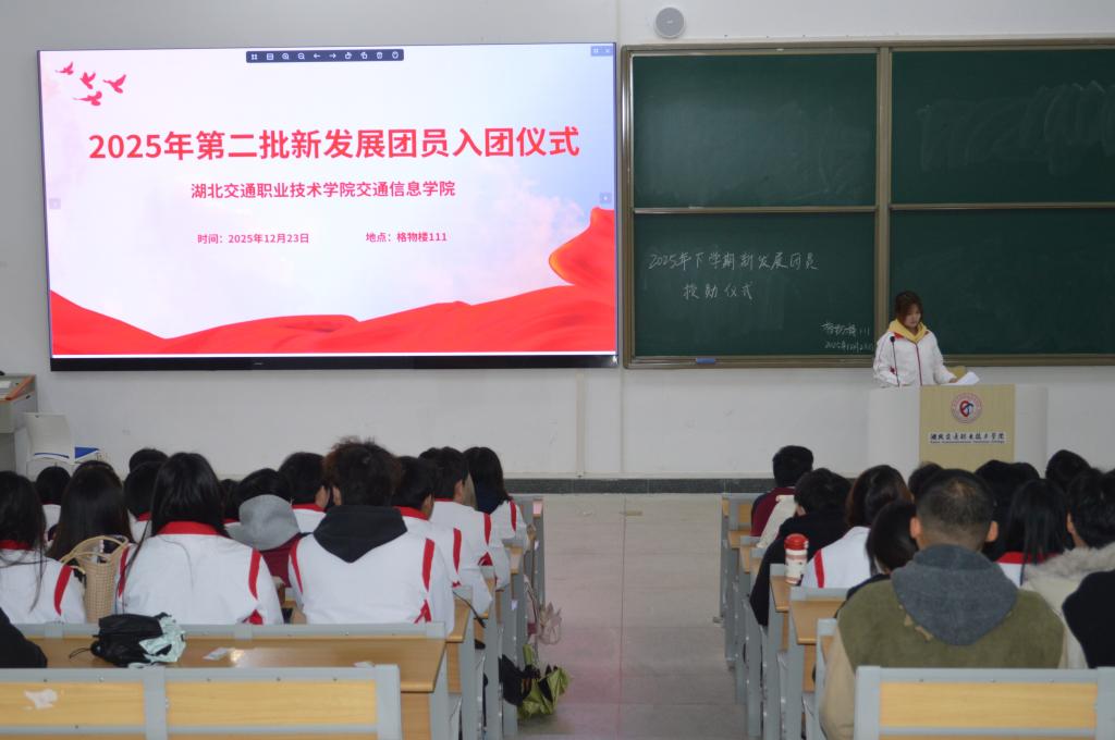 2月23日中午,交通信息学院在格物楼111举行2025年第二批新团员入团仪式。学院党总支书记梅晶、分团委书记黄河恋、分团委副书记郑婷婷及全体新发展团员共同参与仪式。