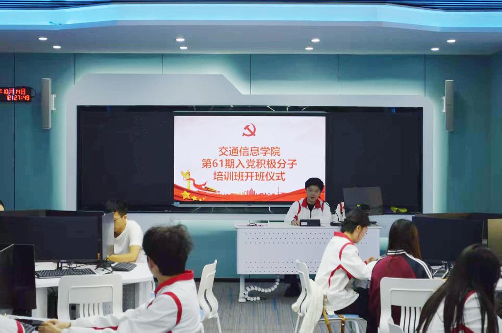 10月14日中午,交通信息学院在乐学楼110教室进行了第61期入党积极分子培训班开班典礼。学院党总支书记梅晶、学生党支部书记黄河恋、学生党支部全体支委及24名入党积极分子参加本次活动。