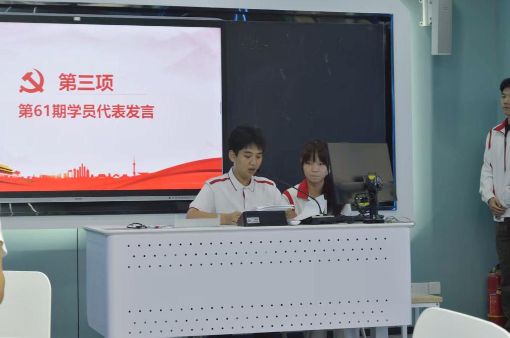 在庄严的国歌中,开班典礼拉开帷幕。第61期学员代表李嘉庆发言,他表示:将珍惜机会,认真学习党的理论,严守纪律,深入研讨,做到学以致用,锤炼党性,提升素养,以实际行动争取早日入党,展现积极分子的良好风貌。