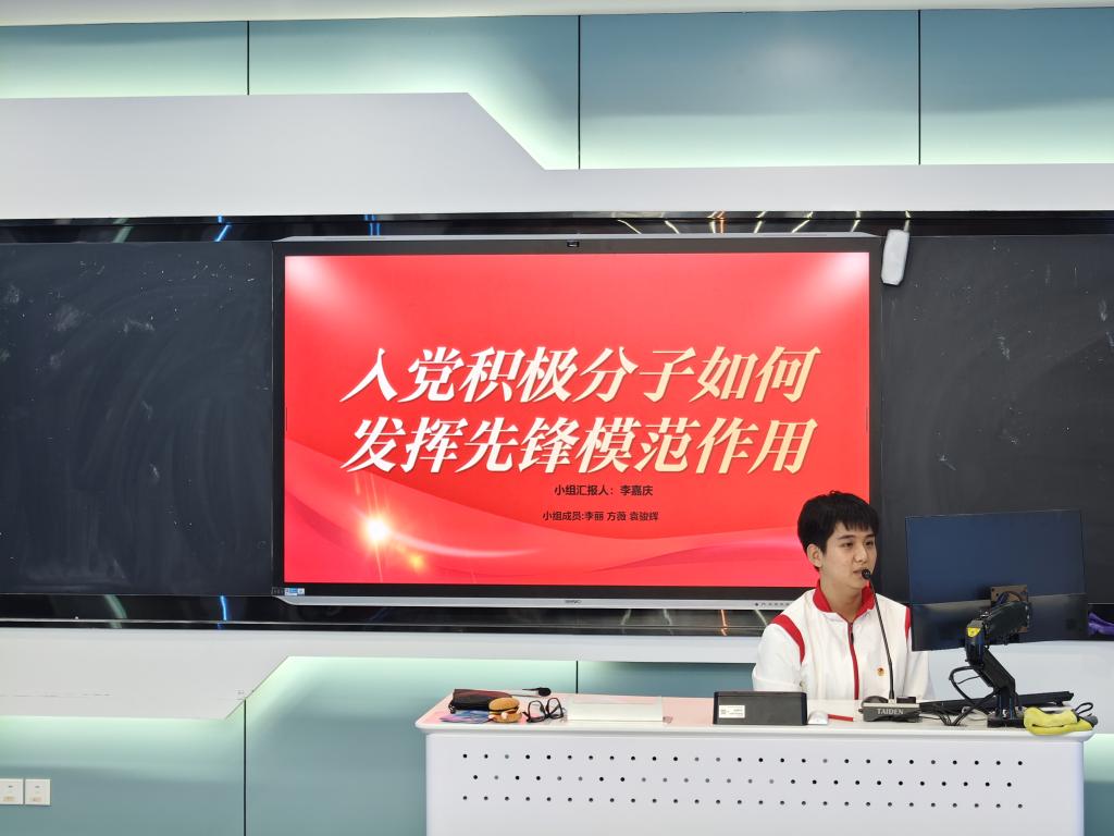 在庄严的国歌中,结业典礼拉开帷幕。学员们分五个小组,围绕“锲而不舍贯彻落实中央八项规定精神”、“入党积极分子如何发挥先锋模范作用”、“我的入党初心”等主题,通过视频、图片和文字等形式分享自己的学习感悟,汇报了自己的学习成效。经现场评议,李嘉庆汇报的第5组获得一等奖,孟令滢汇报的第4组和杜琪汇报的第1组获得二等奖,程长汇报的第3组和代非凡汇报的第2组获得三等奖。