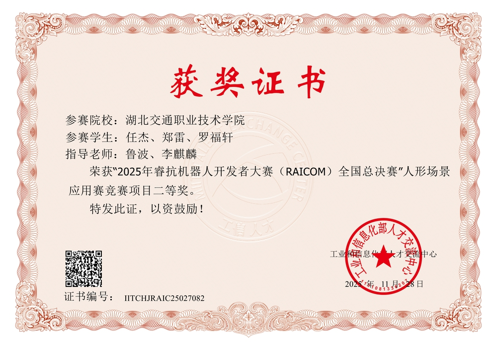 CAIR人形场景应用赛”以未来实战环境模拟为核心,设置了“电网跨越、雷区侦测、爆破作业”等一系列高难度任务。自备赛工作启动以来,各参赛队伍在指导教师的带领下开展系统化攻关,针对机器人目标识别、步态规划与多模态交互等关键技术反复调试、持续优化。根据省赛成绩,我校交通信息学院七支队伍进入国赛,其中,成绩前三的三支队伍获得去杭州现场参加国赛资格,分获全国一等奖1项、二等奖2项。