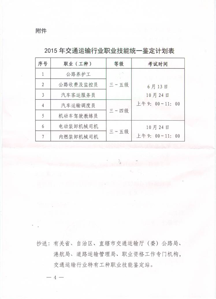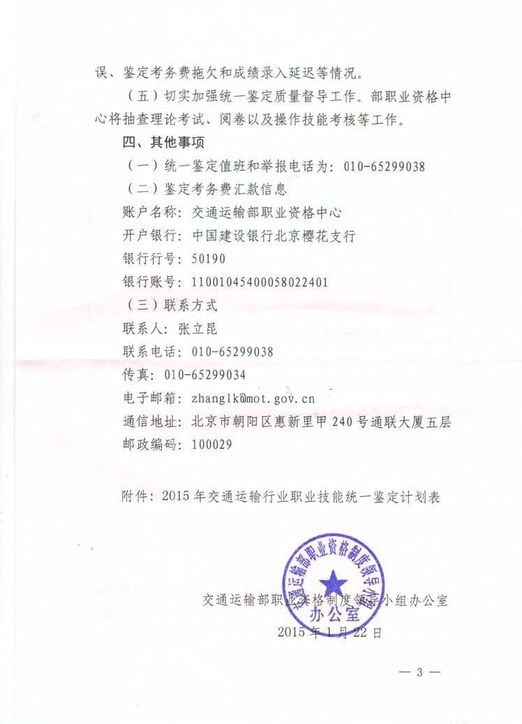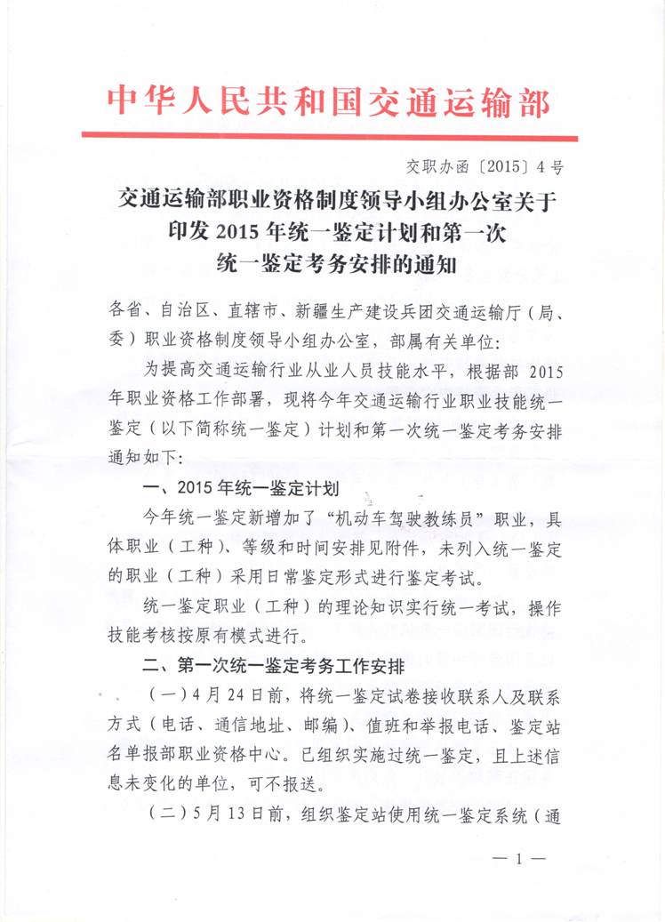 关于组织开展2015年度交通运输行业第一次职业技能统一鉴定工作的通知