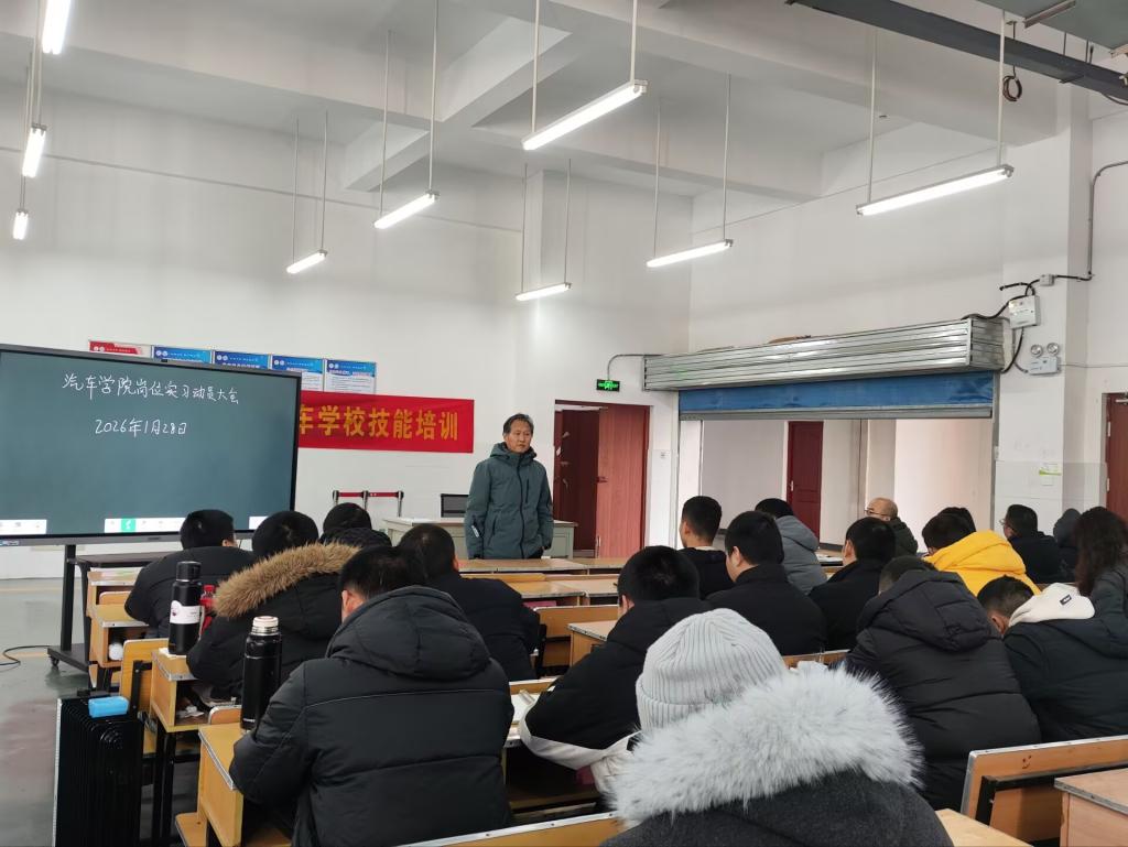 为扎实推进学生实习工作,引导学生做好实习前的各项准备,汽车学院于2026年1月28日在立德楼C209实训室,举行了2023届部分军士生实习动员大会。
