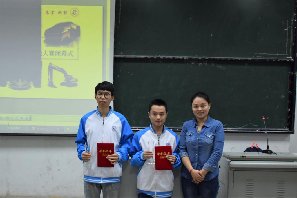 本次汽车故障诊断大赛共有10名同学获奖,其中李永强、李昌宇、王浩林、胡壮四位同学获得三等奖,并由包强、蒋述军老师为其颁奖;李港、凌泽洋、李鑫、王定宝四位同学获得二等奖,并由刘备、李洪亮老师为其颁奖;邓志强、李春艺两位同学荣获一等奖,并由党总支书记杨帆为其颁奖以及合影留念。