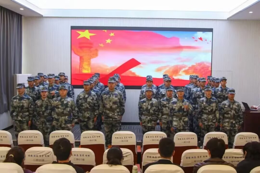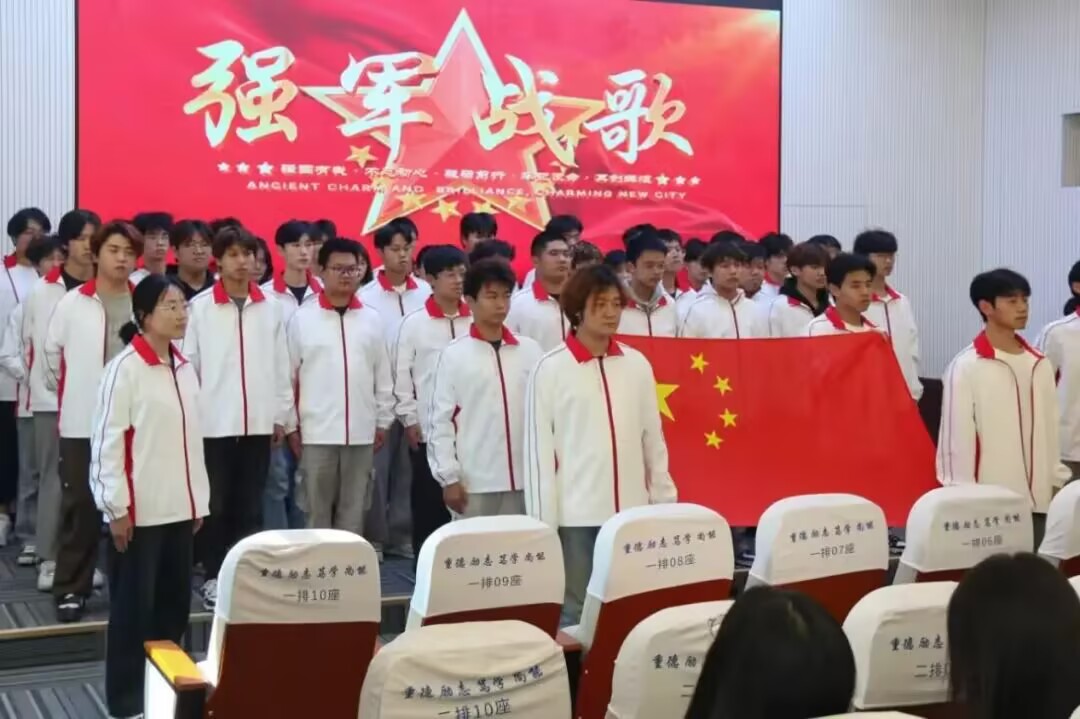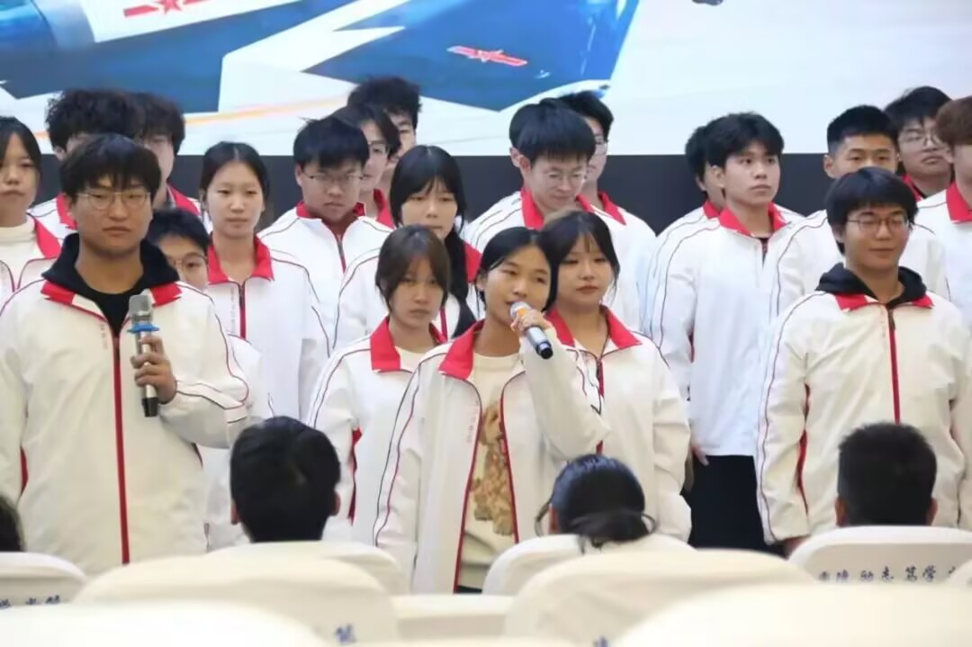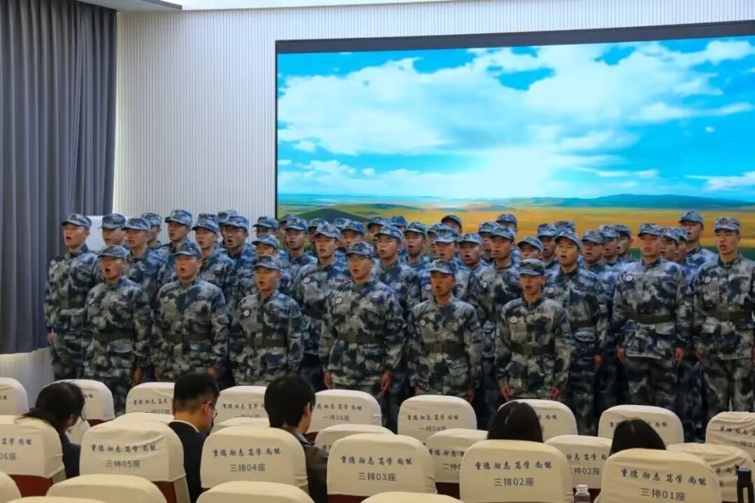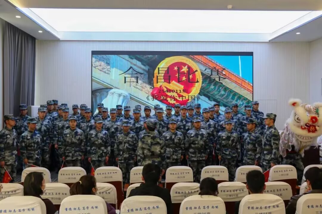 2541024班和2541022班共同演唱的《强军战歌》,节奏铿锵、气势磅礴,展现了当代青年对国防力量的崇敬与投身强国强军事业的决心。