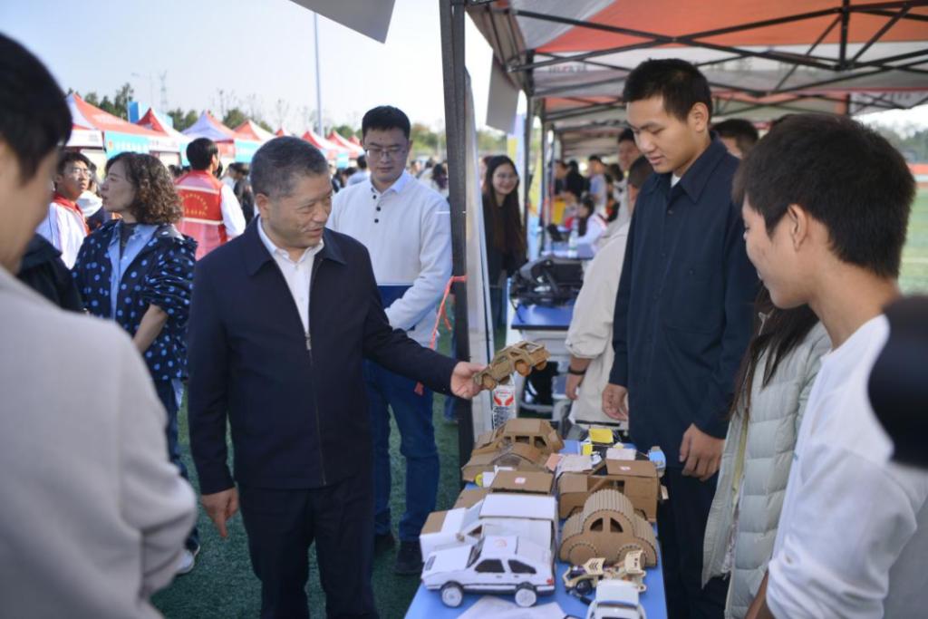 在作品展示环节,校园广场上整齐陈列的数十件小汽车模型吸引了全校师生的目光。师生们纷纷驻足观看,认真欣赏每一件作品的创意与巧思,并不时拿出手机拍照留念。现场设置的投票环节更是气氛热烈,大家根据作品的创意、工艺性、环保理念等维度,为自己喜爱的作品投下宝贵的一票。