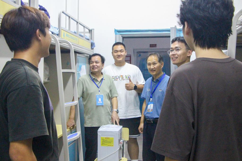 新生入住寝室后,院长带领学院领导班子及辅导员深入新生寝室,与新同学及家长亲切交流。在寝室里,院领导仔细查看了住宿环境,询问新生是否适应新的生活,提醒大家注意用电安全、做好寝室卫生,并耐心解答了新生关于专业学习、校园生活等方面的疑问。同时,他们还与家长们沟通,介绍了学院的人才培养理念、教学资源及就业情况,让家长们对孩子在汽院的学习生活充满信心。这份深入寝室的关怀,不仅拉近了学院与新生的距离,更搭建起了家校沟通的坚实桥梁。