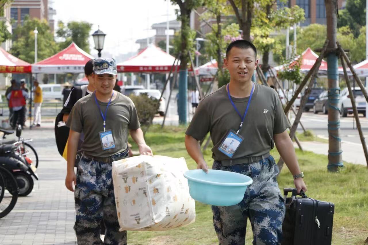 有的志愿者主动接过新生手中沉重的行李,扛着大包小包穿梭在校园里,汗水浸湿了衣衫却毫无怨言,用行动诠释着“奉献、友爱、互助、进步”的志愿精神。