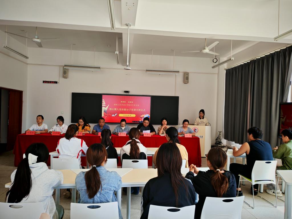 为夯实入党积极分子的思想理论基础,引导青年学子坚定理想信念,10月14日中午建筑与艺术设计学院第61期入党积极分子培训班开班仪式在勤学楼三楼323内圆满举行。学院负责人谭明铭、学生支部全体老师及61期全体入党积极分子参与开班仪式。