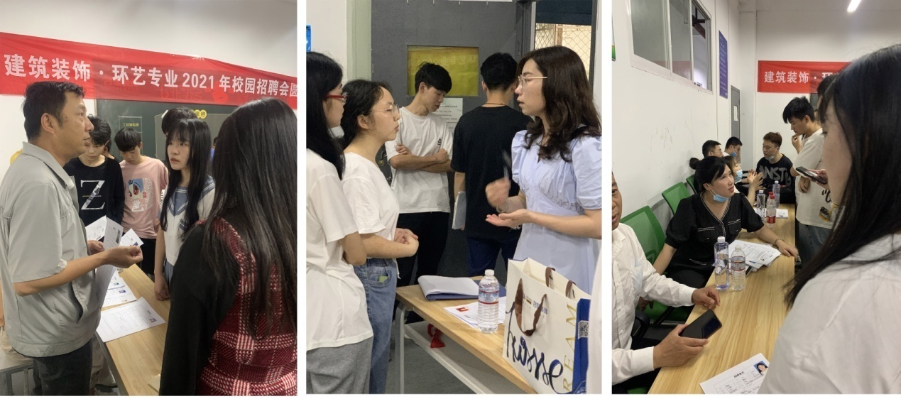 6月3日,我院建筑装饰、环艺专业举办了2021届校园招聘会,红星美凯龙名星装饰、一家一欧标装饰工程有限公司、拜斯达装饰、木德木作全屋定制、索菲亚全屋定制、武汉卡帝斯集成家居、绿源新型材料科技有限公司、武汉同创有限公司、中天六建等近十家单位走进校园,为19级学生提供顶岗实习岗位,招聘会上用人单位提供了覆盖建筑装饰行业的20多个岗位,包括设计师助理、施工监理、预算员、资料员、施工员、客服、销售等。