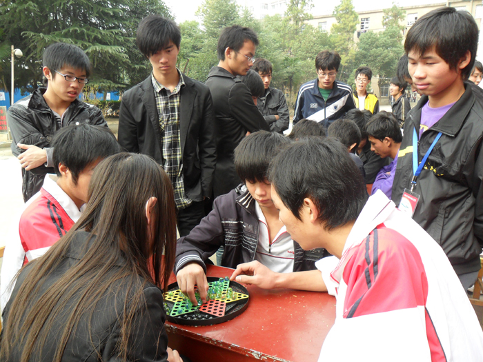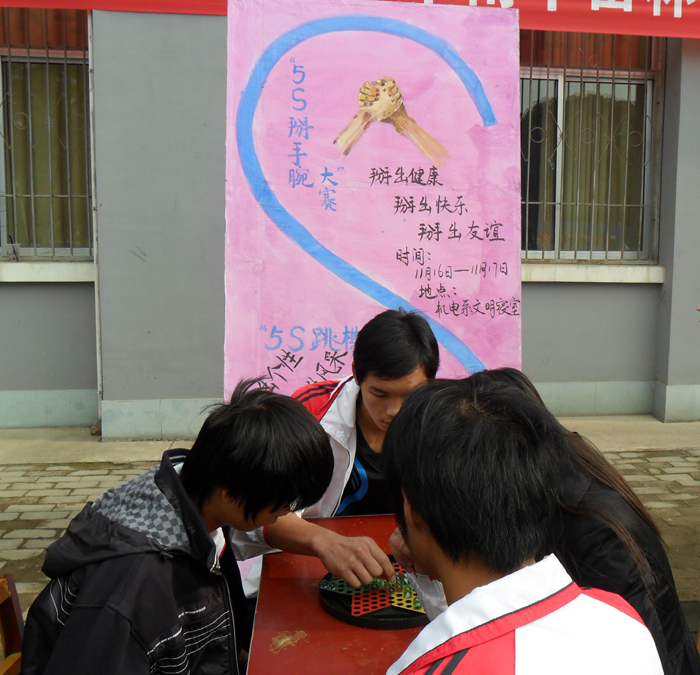 旨在丰富同学们的业余生活,增进各寝室之间的友谊,我系学生会于11月24日中午在实训中心一楼门前举办了一场“5S”寝室跳棋比赛。