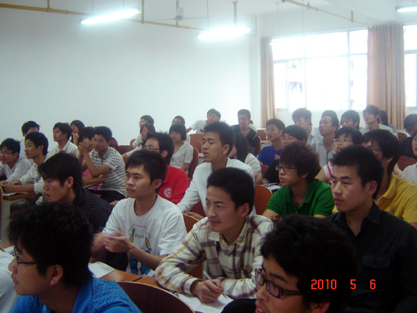 2010年5月6日14时,在学院实训中心四楼G410教室,我系举办了一场“大学生职业生涯规划”的讲座。 07级王千军学长和赵平学长以自己大学三年来的亲身经历,给到场的学弟学妹们讲述了自己对于职业生涯规划的看法。学长们精彩而不乏幽默的演说,博得到场听众的阵阵掌声。最后,在同学们的热烈掌声中讲座圆满结束。本次讲座从广大同学的切身利益出发,为大家解疑答惑的同时也对大家以后的职场打拼、人生规划起到了积极作用,因此得到了大家的一致好评。
