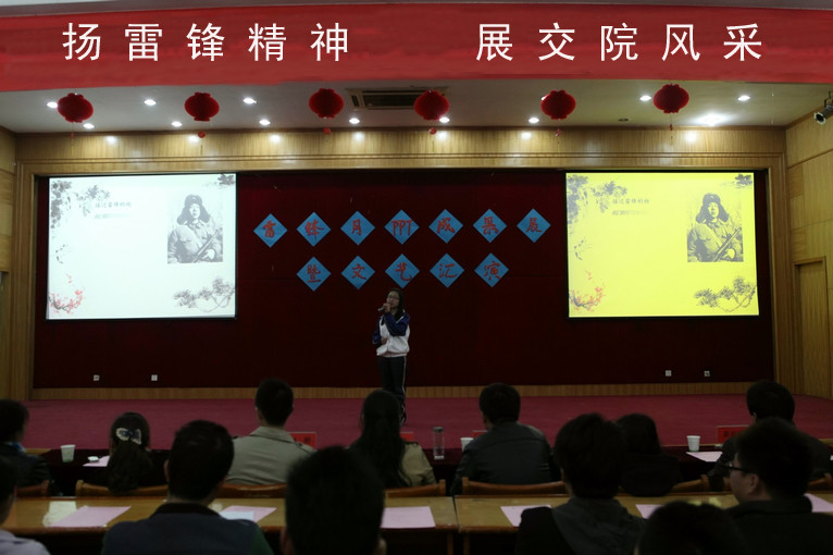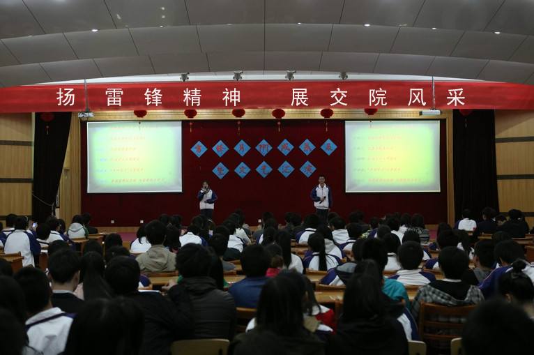 为弘扬雷锋精神,争做新时代的活雷锋。3月28日晚,院团委举办的以“扬雷锋精神,展交院风采”为主题的2013年雷锋月PPT成果展暨文艺汇演在五楼学术报告厅如期举行,院团委书记杨帆、副书记韩继凡出席此次活动,各系分团委书记、主席团成员及社区负责人参加此次活动。