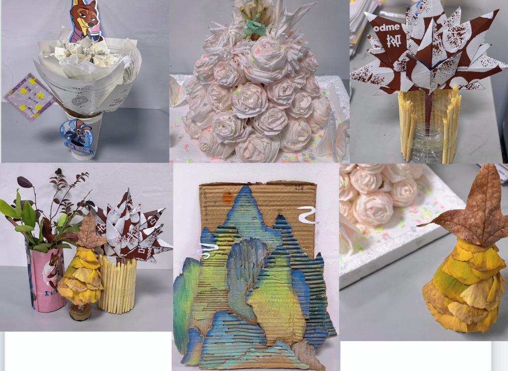 活动由“主题班会、劳动实践、光盘行动、教育观影、变废为宝和发现最美劳动者”六个环节组成。一方面,各班同学在辅导员的带领下,有序开展了“学习劳动模范,争做先进个人”的主题班会,班会期间通过组织学生观看《厉害了我的国》、《劳动筑就中国梦》、《大国工匠》、《铁人》等主题电影,来提升增强学生的劳动素养;另一方面,同学们利用课余时间进行合理分工、互相配合共同完成了“教室—寝室—校园公共区域”的大扫除活动,并在活动之余,各班生活委员组织同学们将废弃物品进行创意加工再利用,变废为宝,制作了一件又一件形式多样、富有创造性的作品,既展现了物交学子的创意风采,又提升了学生的环保意识和动手能力。
